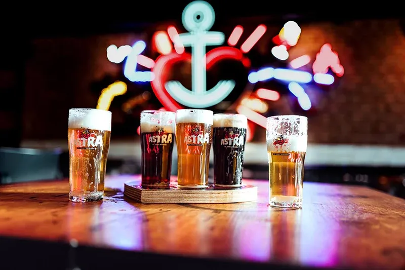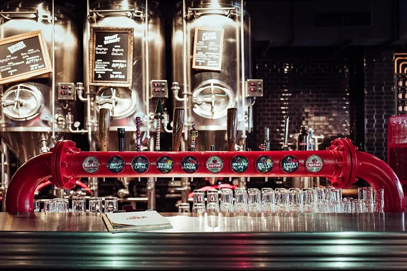 Als Braugasthaus der Kult-Marke ASTRA braut die ASTRA St. Pauli Brauerei zwischen Rotlicht und Party geiles Bier. In der eigenen 1000-Liter-Mikrobrauerei zaubert Chefbrauer Merlin flüssige Kiezgrößen wie ASTRA Luden Lager, ASTRA Inkasso IPA oder ASTRA Keller Kalle.