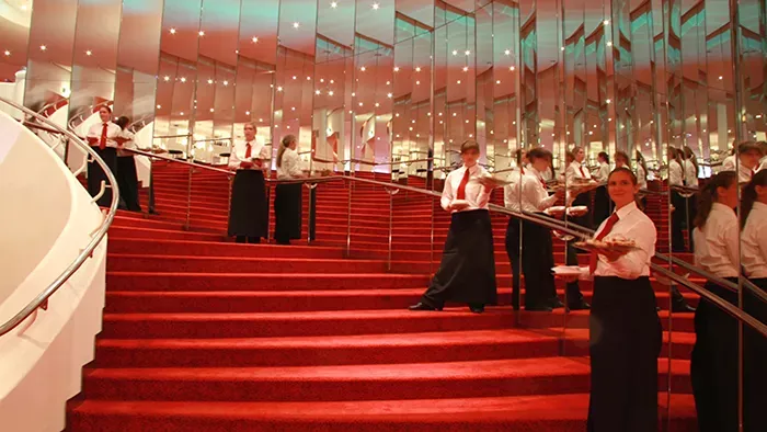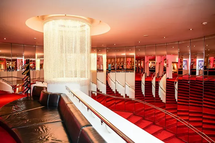 Das Stage Operettenhaus ist ein klassisches Ein-Rang-Theater mit elegantem Schwung – und doch wirkt der Saal größer als „nur“ 1.389 Plätze fassend. Bühnenturm und Seitenbühnen erlauben technisch selbst die anspruchsvollsten Produktionen. Highlights der Foyer-Ebenen sind das verspiegelte Treppenhaus und die große Fensterfassade über der Reeperbahn. Das Haus kann auf manch spektakuläre Musical-Inszenierung zurückschauen, wie z. B. auf ROCKY, bei dem der Orchestergraben zum Finale hin mit einem beweglichen Boxring geschlossen und somit aus dem Guckkasten- ein Arenatheater wurde. Das preisgekrönte Broadwaymusical HAMILTON bescherte dem Stage Operettenhaus mit seiner deutschen Inszenierung sogar internationale Aufmerksamkeit. Und aktuell hat das seit 26 Jahren von über 10 Millionen Menschen bewunderte Musical TANZ DER VAMPIRE hier für ein Jahr seine Heimat gefunden.