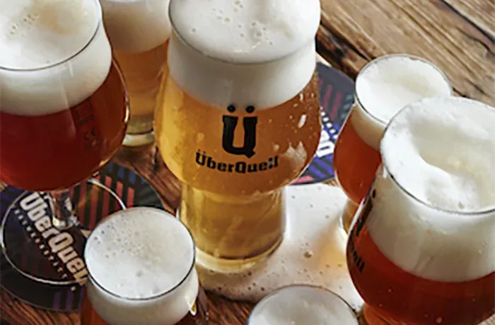 Das ÜberQuell steht für ehrliche, handgemachte Biere & Pizzen und ein ausgelassenes Miteinander. Das liegt auch am Hafen und St. Pauli – unserem Zuhause. Hier steht die Brauerei. Hier sind wir Gastgeber im Restaurant, im Biergarten und im BrewPub. Jeden Tag.